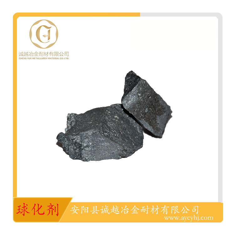 球化劑是使鑄鐵中的石墨呈球狀析出的鐵水添加劑。應用于鑄鐵鑄造領域。含鎂量4%、5%、5.5%屬于低鎂球化劑,RE在1%-2%之間,多用于中頻爐熔煉、低硫鐵液的球化處理。它具有球化反應和緩、球化元素易于充分吸收的優點。 含鎂量6%、7%屬中鎂系列球化劑,多用于沖天爐、電爐雙聯熔煉,或中頻爐熔煉珠光體型鑄態球墨鑄鐵鑄件。根據鑄件壁厚和原鐵水含硫量,確定合適的球化劑加入量,適用范圍廣,球化處理工藝寬泛。 高鎂系列球化劑,適合沖天爐熔煉、含硫量0.06%-0.09%的鐵液,加入量在1.6%-2.0%之間。 低鋁球化劑使用于容易產生皮下氣孔缺陷的鑄件,以及對鐵液含鋁量有要求的鑄件。 純Ce、純La生產的球化劑,球化處理后鐵液純凈夾雜物少、石墨球圓整。釔基重稀土生產的球化劑適合于大斷面鑄件,延緩球化衰退、防止塊狀石墨。含Sb球化劑用于珠光體型球墨鑄鐵。 低硅球化劑適用于使用大量回爐料的鑄造工廠;鎳鎂球化劑則用于高鎳奧氏體球墨鑄鐵。